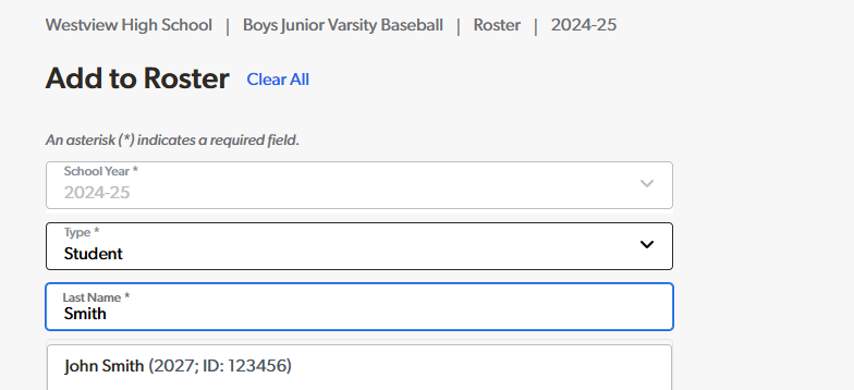 Please note that currently, individuals must be added to the roster one at a time.