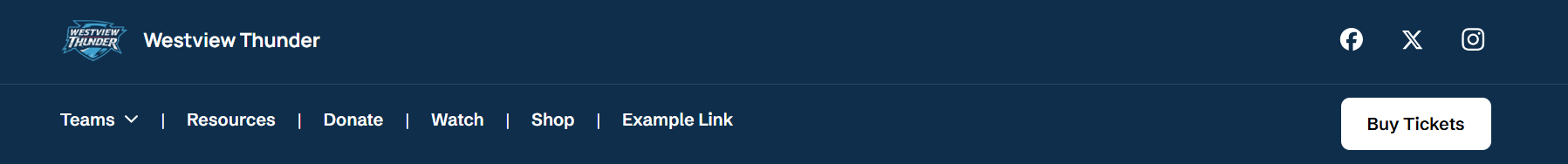 Navigation Management: This section in the CMS allows you to control the main menu navigation on your website. In addition to the default Resources and Teams links, you can choose to display pre-configured options like Watch, Shop and Donate, each with a designated link. Furthermore, you can add up to three custom navigation items with links to any URL. Common examples include links to the main school website, student registration platforms or league websites.